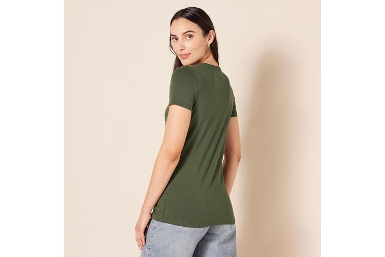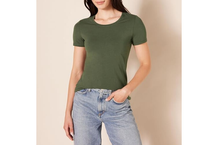 Amazon Essentials Women's Regular-Fit Short-Sleeve Crewneck T-Shirt, Pack of 2, Black/Olive, X-Large