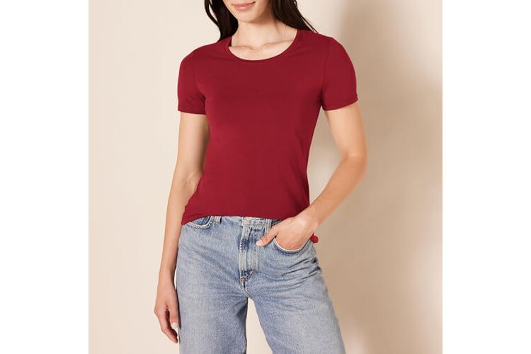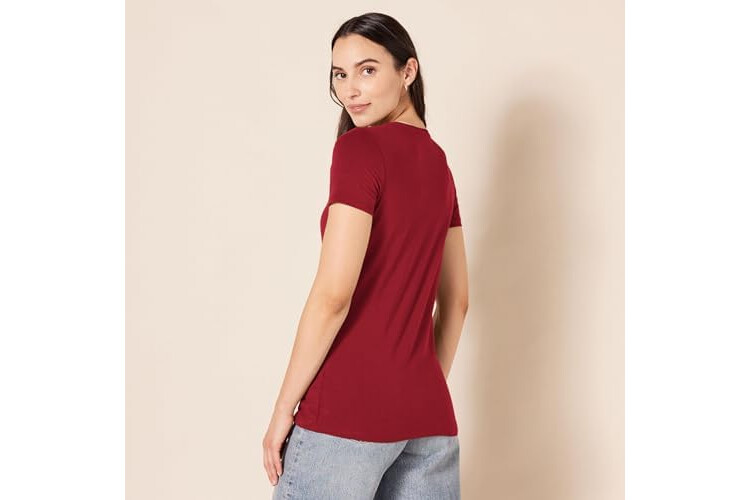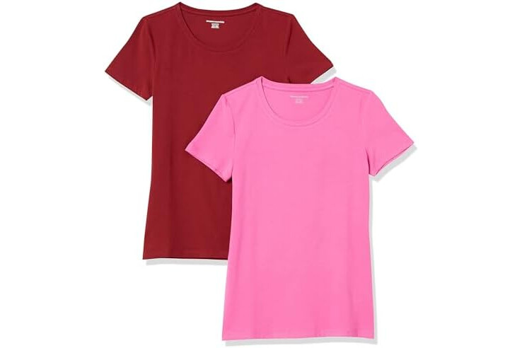 Amazon Essentials Women's Regular-Fit Short-Sleeve Crewneck T-Shirt, Pack of 2, Burgundy/Pink, X-Large