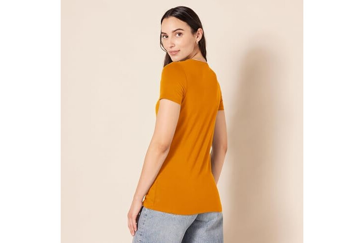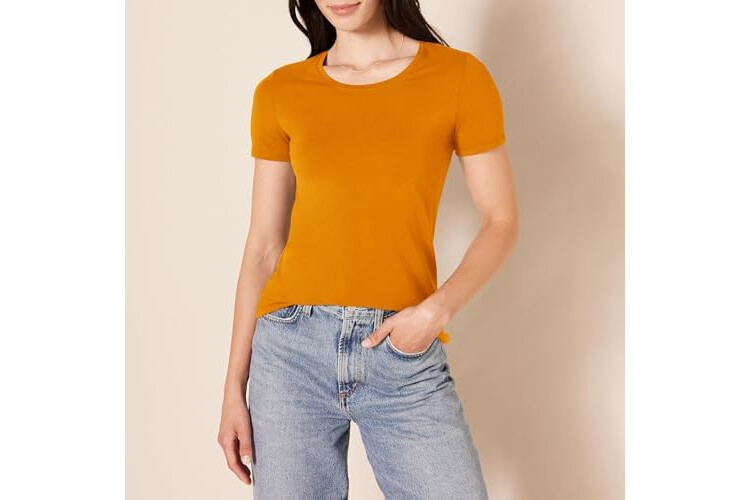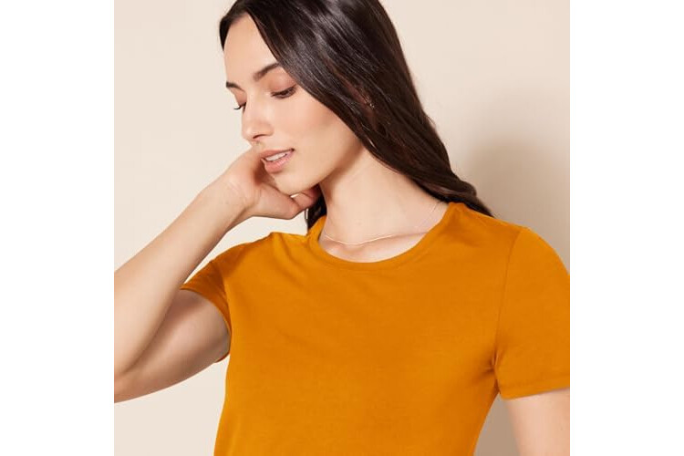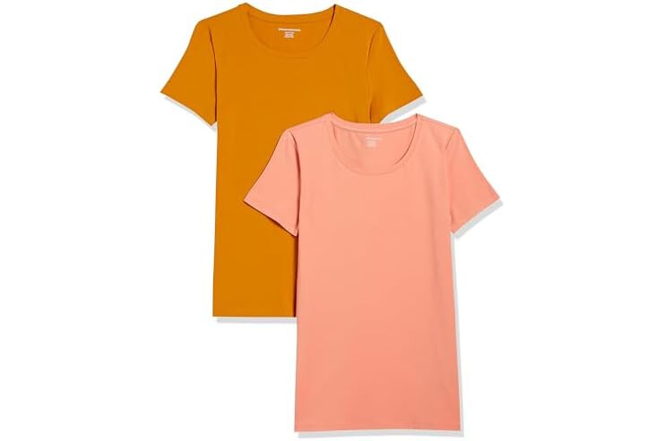 Amazon Essentials Women's Regular-Fit Short-Sleeve Crewneck T-Shirt, Pack of 2, Coral Orange/Golden Yellow, X-Large