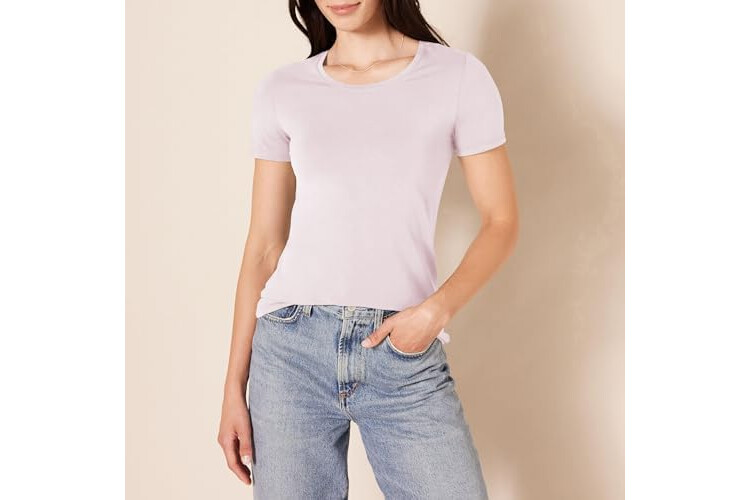 Amazon Essentials Women's Regular-Fit Short-Sleeve Crewneck T-Shirt, Pack of 2, Charcoal Heather/Light Purple, Medium