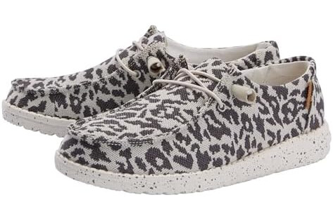 Hey Dude Women's Wendy Woven Cheetah Grey Size 8 | Women’s Shoes | Women’s Lace Up Loafers | Comfortable & Light-Weight