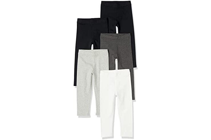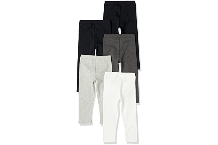 Amazon Essentials Girl's Leggings, Pack of 5, Black/Grey Heather/White, 2T