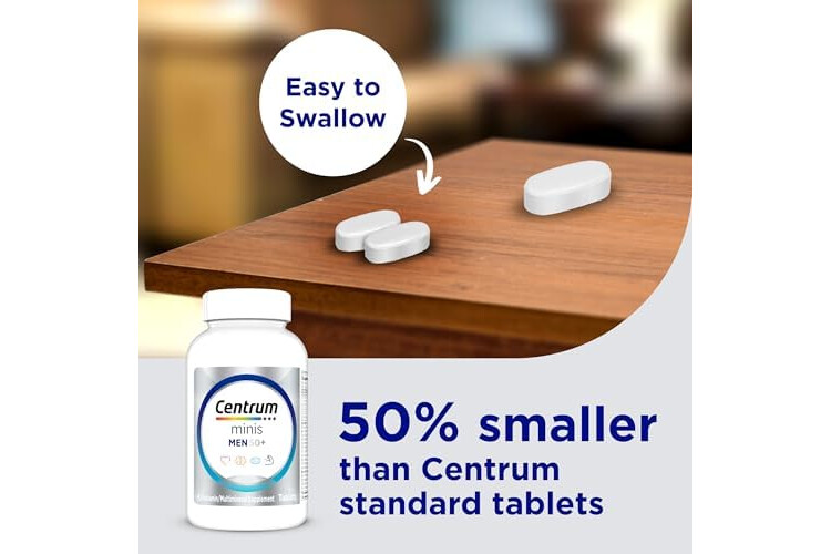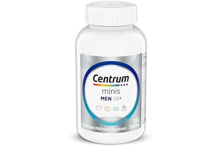 One 280 count bottle of Centrum Minis Silver Multivitamin for Men 50 Plus, Multivitamin/Multimineral Supplement with Vitamin D3, B-Vitamins and Zinc