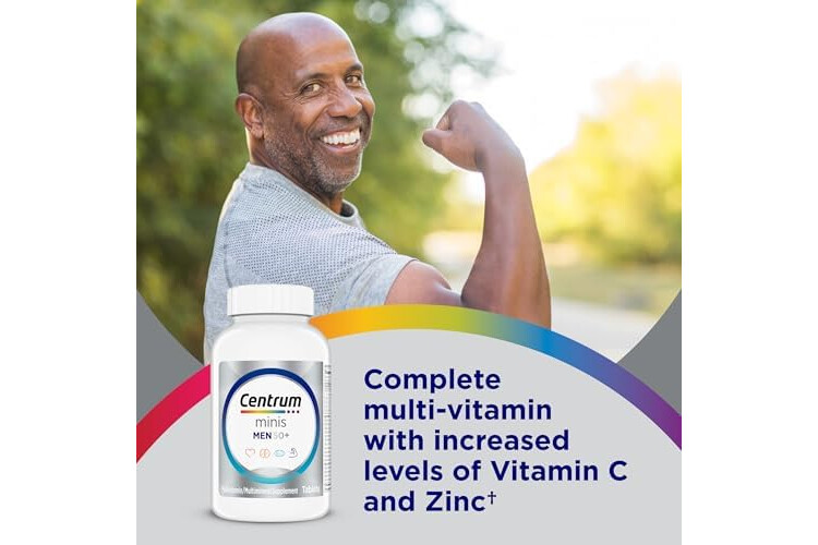 Centrum Minis Silver Multivitamin for Men 50 Plus, Multivitamin/Multimineral Supplement, Vitamin D3, B-Vitamins and Zinc, Non-GMO Ingredients, Supports Memory and Cognition in Older Adults - 280 Ct