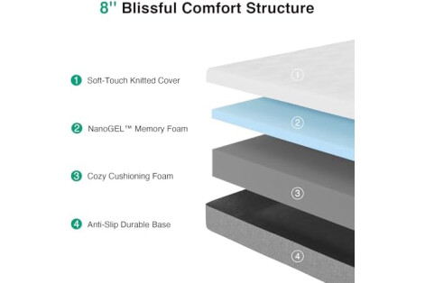 LONG-LASTING COMFORT WITH MEDIUM FIRM FULL SIZE MATTRESS- Novilla 8-inch full mattress features 2-layer foam construction. This mattress delivers a comfortable balance of cushioning and support, which contours to your body while aligns your spine. Novilla gel memory foam mattress helps to relieve pressure points and resistant to body impressions.