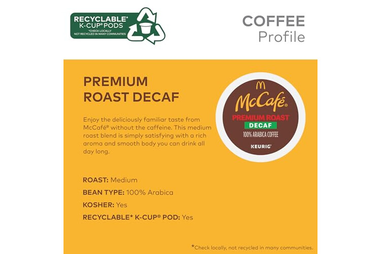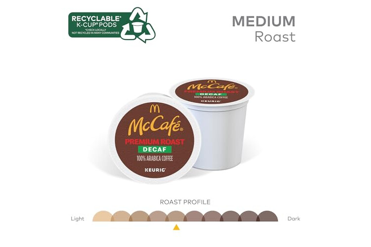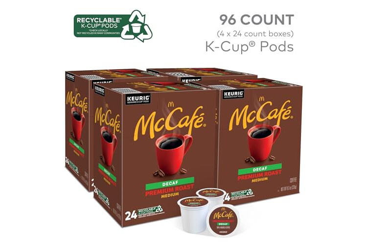 McCafe Premium Roast Decaf Coffee, Single Serve Keurig K-Cup Pods, Decaffeinated, 96 Count (4 Packs of 24)