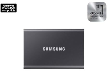 Samsung T7 Portable SSD, 1TB External Solid State Drive, Speeds Up to 1,050MB/s, USB 3.2 Gen 2, Reliable Storage for Gaming, Students, Professionals, MU-PC1T0T/AM, Gray