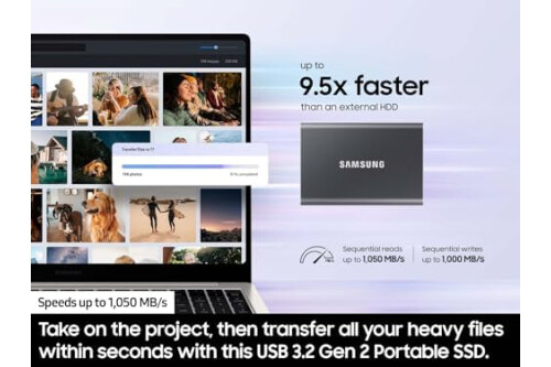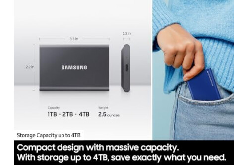 MADE FOR THE MAKERS: Create; Explore; Store; The T7 Portable SSD delivers fast speeds and durable features to back up any endeavor; Build your video editing empire, file your photographs or back up your blogs all in an instant