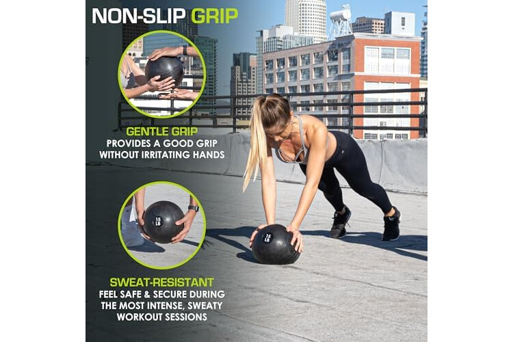 TEXTURED GRIP - A robust tire tread surface gives you a sturdy grip during intense workouts to prevent the heavy gym ball from slipping through your hands