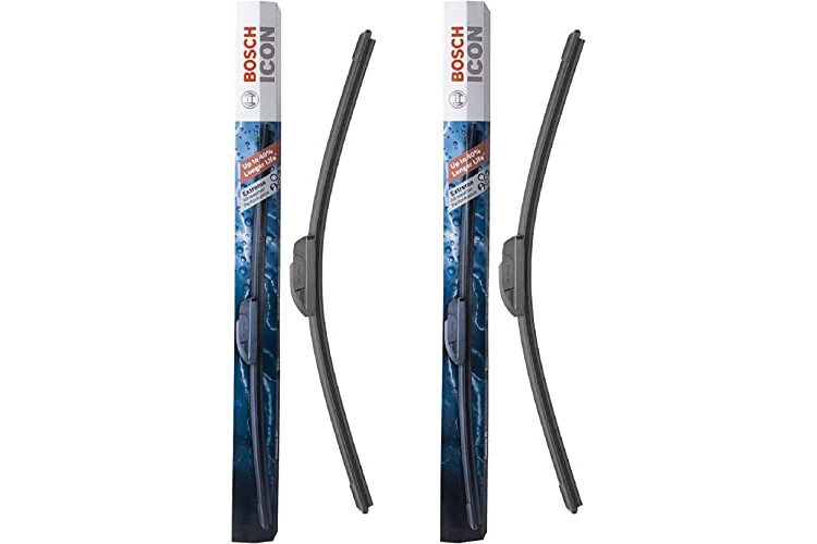 Bosch ICON makes windshield wiper replacement simple and easy, with 2-pack bundles that include popular driver and passenger side blade length combinations designed to fit specific vehicles. ICON wiper blades feature Bosch's exclusive fx dual rubber technology that resists heat and ozone deterioration and has proven to last up to 40% longer than other premium wiper blades. The patented ICON beam design features exclusive tension spring arcing technology that creates a fit that's custom-contoured to the curvature of each side of the windshield, for optimized visibility even under extreme weather conditions. Built-in flexible asymmetric spoiler distributes uniform downward force along the entire length of the wiper blade, holding it firmly to the windshield at higher speeds to prevent lift-off, ensuring a cleaner wipe. Quick and easy installation with original equipment quality hook adapter that is compatible with 9x3mm and 9x4mm hook wiper arms (not compatible with side lock, pinch tab, or top lock wiper arms which require "OE" suffix part numbers).