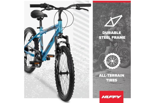 Huffy Stone Mountain Bike for Men and Women, 20”/24”/26”, 6-Speed (20”) or 21-Speed, Front or Dual Suspension (Varies), Multiple Colors, Adjustable Saddle, Shimano Equipped, All-Terrain Tires