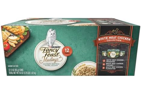 | Included Components | Twelve (12) 3 oz. Cans - Purina Fancy Feast Wet Cat Food Variety Pack, Medleys White Meat Chicken in Sauce Collection |