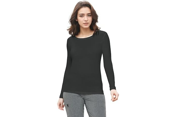 Natural Uniforms Women's Under Scrub Tee Crew Neck Long Sleeve T-Shirt (Black, 2X-Large)