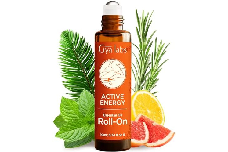 Gya Labs Active Energy Essential Oil Roll On - Blended with Energizing Lemon, Refreshing Peppermint Oil & More - 100% Pure Aromatherapy Oils Made to Stimulate The Senses - Travel Size (0.34 Fl Oz)