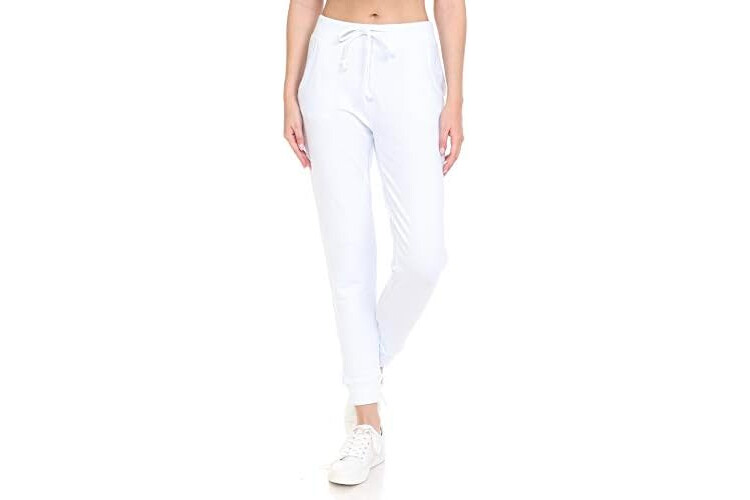 Leggings Depot Women's Cotton Jogger Sweatpants Yoga Track Pants with Pockets-FRENCHTERRY-White-S