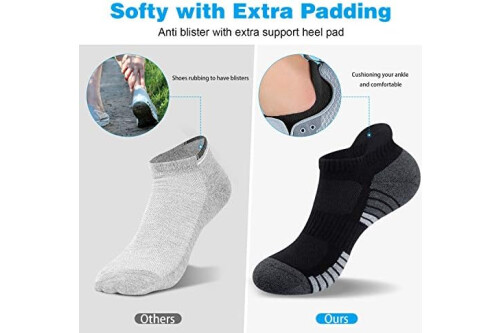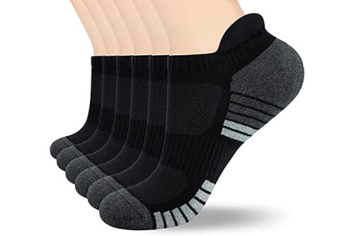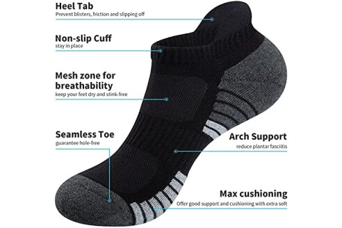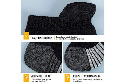 Tmani 6 Pairs Men Socks Cushioned Ankle Durable Cotton Socks Thick Low Cut for Sport Running Basketball Football