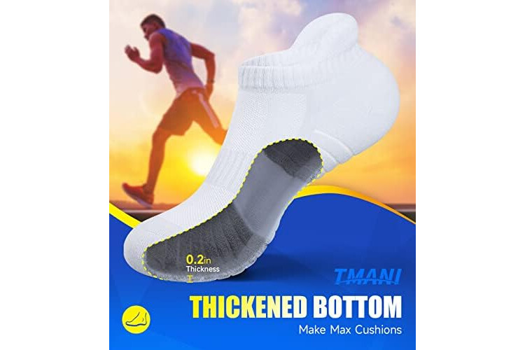 Tmani 6 Pairs Men Socks Cushioned Ankle Durable Cotton Socks Thick Low Cut for Sport Running Basketball Football