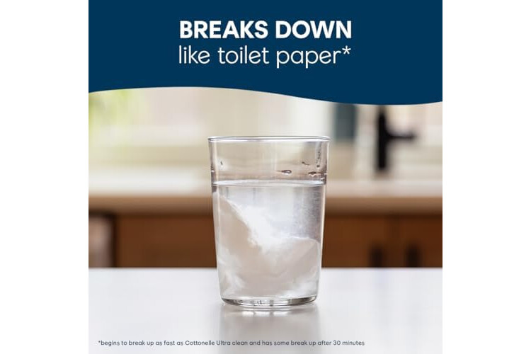 BREAKS DOWN LIKE TOILET PAPER* — Every flushable wipe breaks down like toilet paper, making them sewer- and septic-safe (*begins to break up as fast as Cottonelle Ultra Clean and has same break up after 30 minutes)