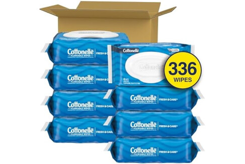 WHAT'S INCLUDED — 8 flip-top packs of Cottonelle Fresh Feel Flushable Wet Wipes, 42 flushable wipes per pack (336 wipes total); packaging may vary