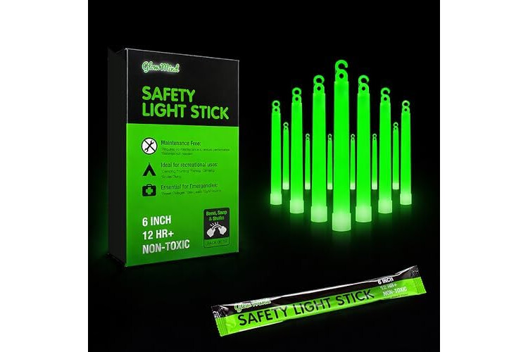 Emergency Glow Sticks with 12 Hours Duration, Individually Wrapped Industrial Grade Glowsticks for Survival Gear, Camping Lights, Power Outages and Military Use