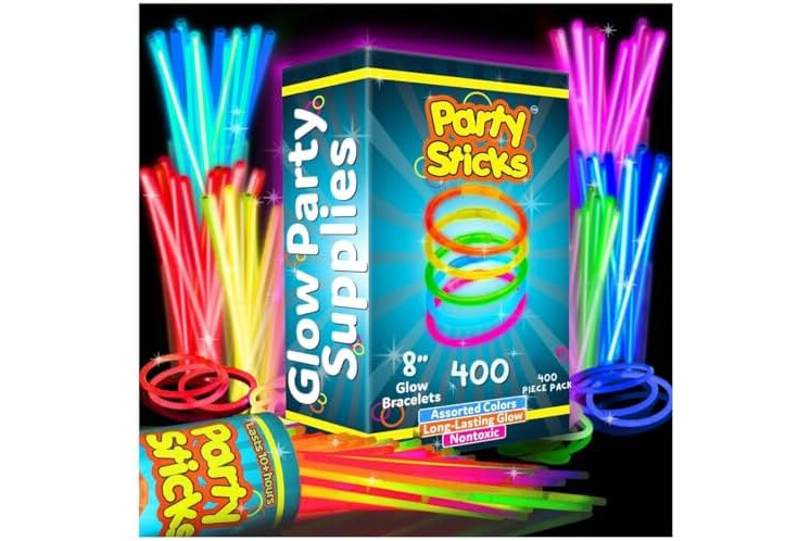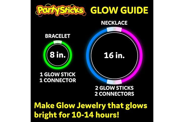PartySticks Ultra Bright Glow Sticks Bulk Party Supplies 400 Pack - 8" Glow in the Dark Light Up Halloween Party Favors, Glow Decorations, Neon Party Necklaces and Bracelets with Connectors