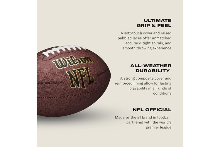 ULTIMATE GRIP AND FEEL: Soft touch composite cover for that quality feel that flows right off your fingers and raised pebbled laces offer extra fingerpoint grips when throwing for more accurate control and seamless spiral
