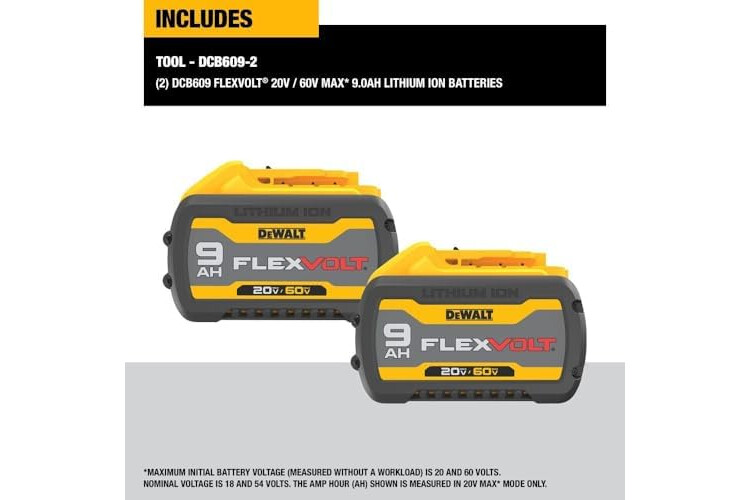 DEWALT FLEXVOLT 20V/60V MAX* Batteries, 9.0-Ah, 2-Pack (DCB609-2)