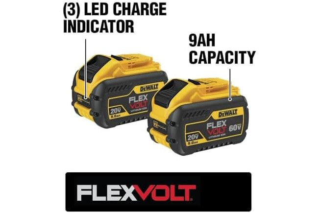 • DEWALT 20V/60V Battery has 180 Watt Hours of energy in each battery pack (360 Watt Hours combined)