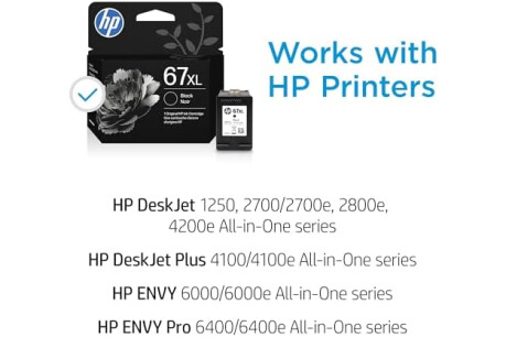 HP 67XL Black High-yield Ink Cartridge for HP Printers | Works with Printer Series: DeskJet 1255, 2700, 4100, ENVY 6000, 6400 Series | Eligible for Instant Ink | 3YM57AN