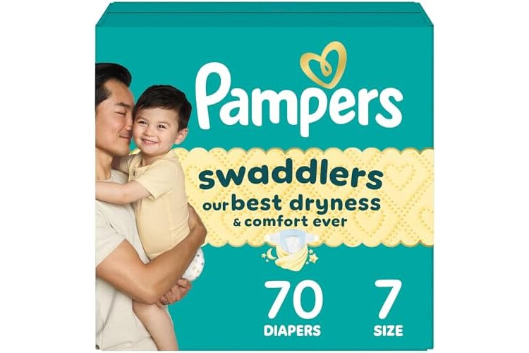 Pampers Swaddlers Diapers, Size 7 (26-50 lbs), 70 Count, Absorbent, Keeps Baby Dry and Comfortable, Skin Safe Disposable Baby Diaper (Packaging May Vary)