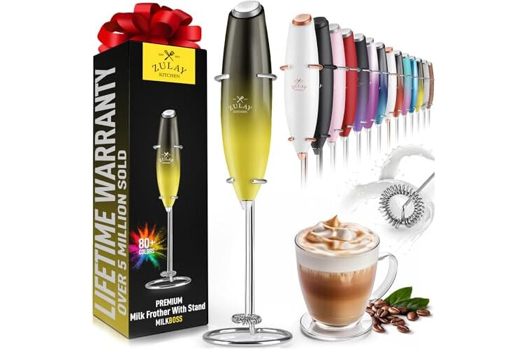 Zulay Powerful Milk Frother Handheld Foam Maker for Lattes - Whisk Drink Mixer for Coffee, Mini Foamer for Cappuccino, Frappe, Matcha, Hot Chocolate by Milk Boss - Honeybee