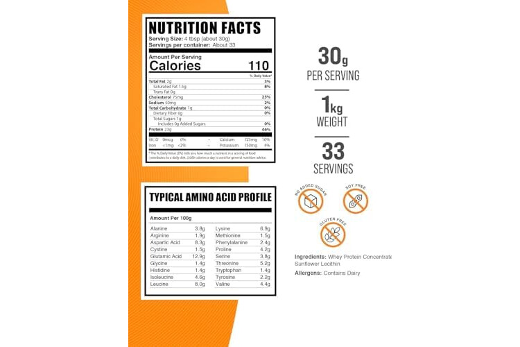 Maximize your Potential: Enhance your active lifestyle with our Whey Protein Concentrate powder designed to support your strength and performance goals. Each serving delivers a substantial 30 grams dose, catering to both fitness enthusiasts looking to push their limits.