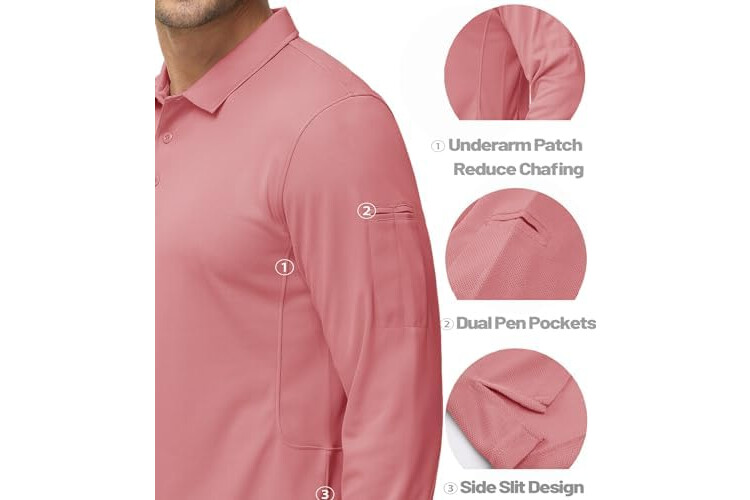 MAGCOMSEN Men's Polo Shirts 3 Button Quick Dry Performance Long Sleeve Tactical Shirts Pique Jersey Golf Shirt