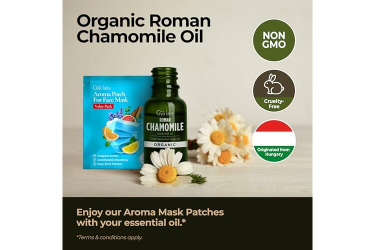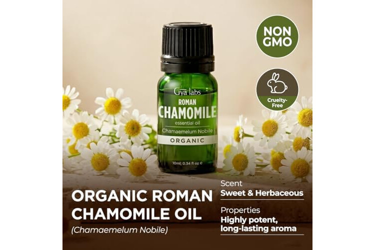 Gya Labs Organic Roman Chamomile Essential Oil - 0.34 Fl Oz - for Skin, Hair, Diffuser, Aromatherapy, DIY Candle Making Scents