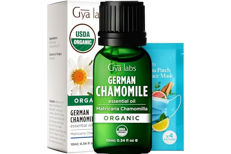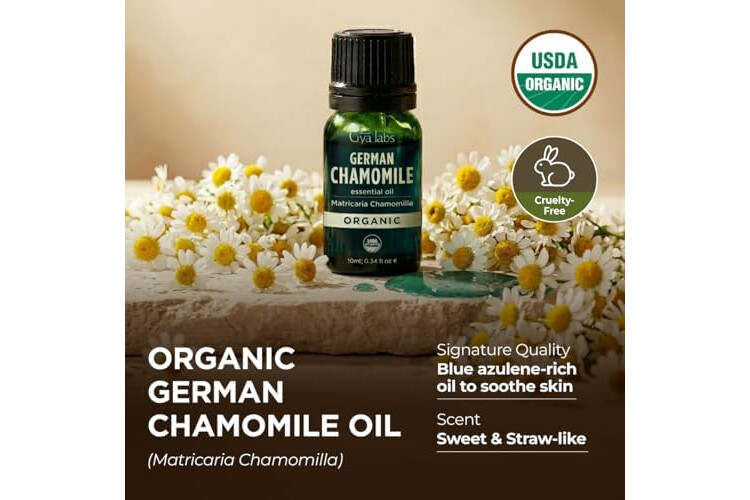 Gya Labs Organic German Chamomile Essential Oil - 0.34 Fl Oz - for Skin, Hair, Diffuser, Aromatherapy, DIY Candle Making Scents