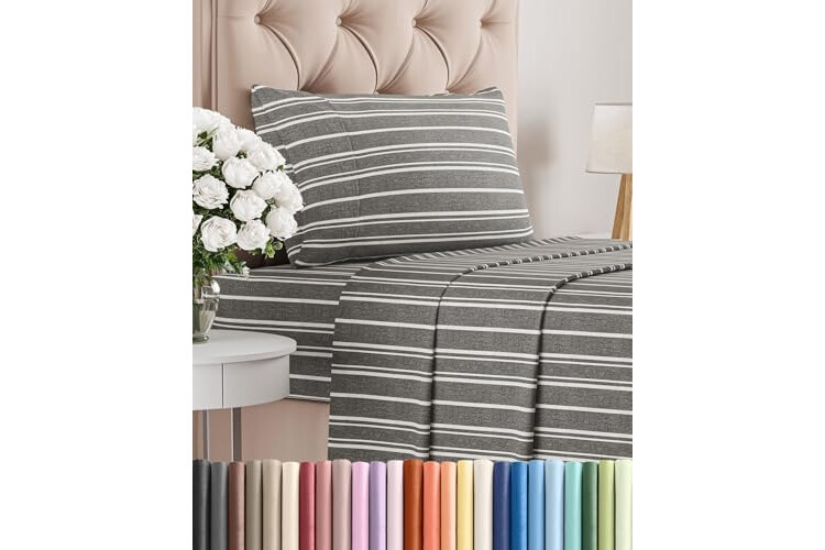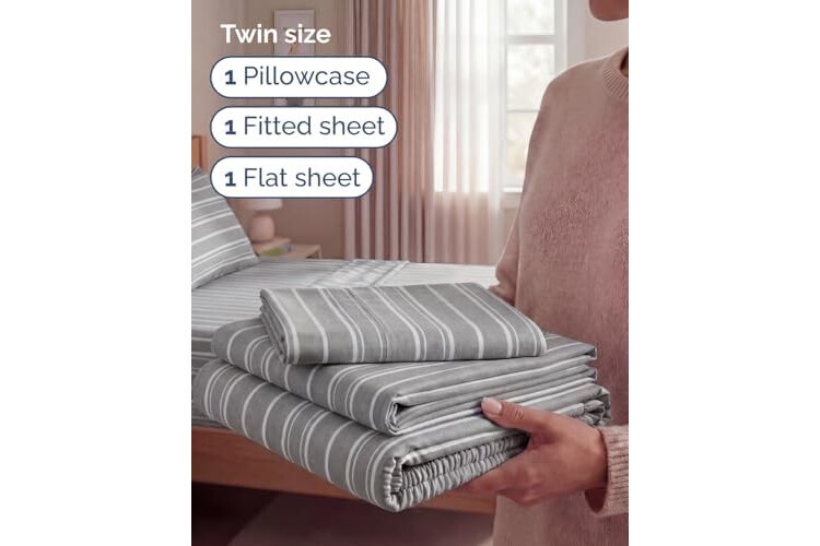 Twin Size 3 Piece Sheet Set - Comfy Breathable & Cooling Bed Sheets Set - Hotel Luxury Bedding for Women, Men, Kids, Teens, Boys & Girls - Deep Pockets, Soft, Wrinkle Free - Oeko-Tex - Grey Stripes 3