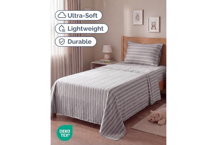 3 PIECE BED SHEET SET: 1 pillow case and flat sheet and fitted sheet. Flat Sheet (96”x 66”) Fitted Sheet (75”x 38”) 1 Pillow Case (20”x 30”) - a comfy upgrade for Adults, Kids, Teens, Boys & Girls.