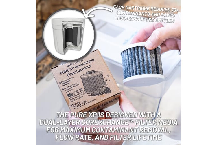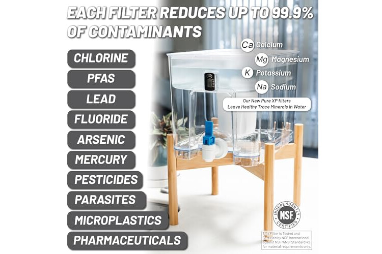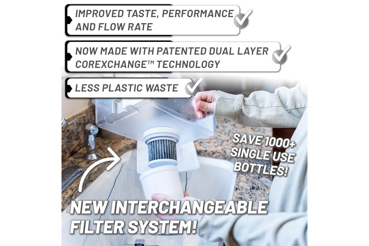 Tap water filter: Proprietary solid carbon block filter removes 2000% more contaminants than the leading water filter pitcher including Total Trihalomethanes, Chromium 6, Fluoride, Chloramines, Bromodichloromethane and much more. 6mm thick solid carbon block water filters protect you and your family from contaminants that other filters miss. Smart filter media keeps healthy trace minerals like calcium and magnesium in your water, which a reverse osmosis system will strip out.