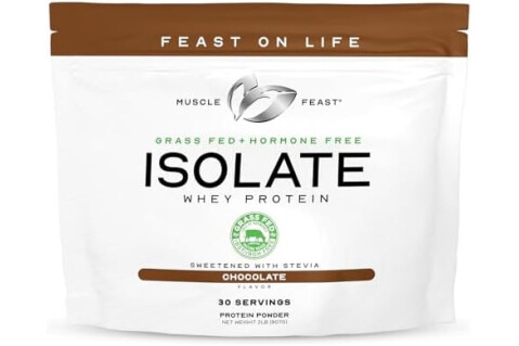 Muscle Feast Grass-Fed Whey Protein Isolate, All Natural Hormone Free Pasture Raised, Whey Isolate Protein Powder for Men and Women, Clean, Gluten-Free, Delicious Isolate Protein - Chocolate, 2lb