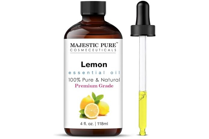 Majestic Pure Essential Oil with Glass Dropper - 100% Pure and Natural - Essential Oils for Diffuser, Aromatherapy, Soap and Candle Making, Lemon Essential Oil, Lemon Oil, 4 Fl Oz