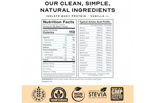 GRASS FED WHEY PROTEIN ISOLATE: Natural whey protein powder comes from pasture raised, grass-fed, happy cows and is rBST- and rBGH-free.