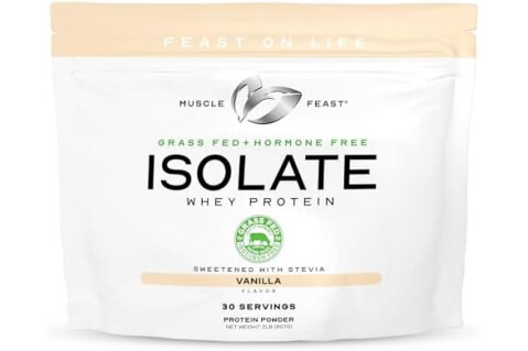 Muscle Feast Grass-Fed Whey Protein Isolate, All Natural Hormone Free Pasture Raised, Whey Isolate Protein Powder for Men and Women, Clean, Gluten-Free, Delicious Isolate Protein - Vanilla, 2lb
