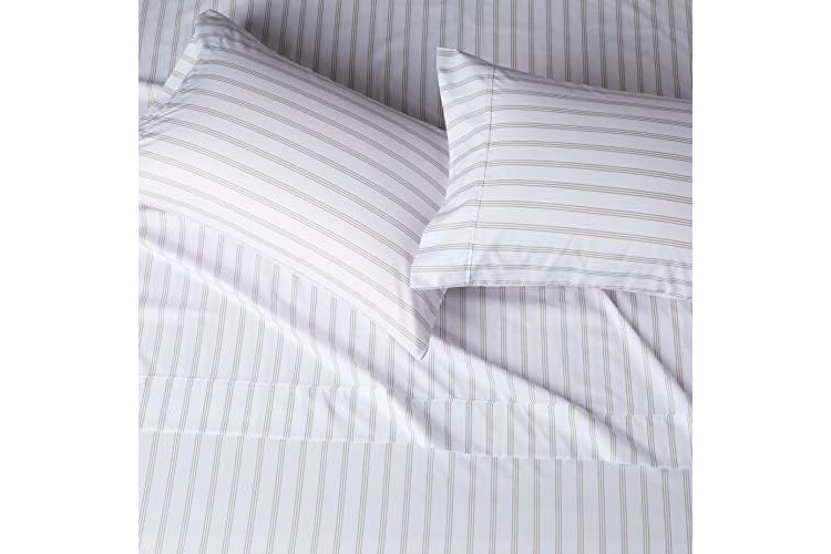 Amazon Basics Lightweight Super Soft Easy Care Microfiber Bed Sheet Set with 14" Deep Pockets - Cal King, Taupe Stripe