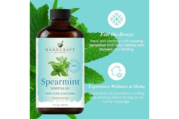 Handcraft Blends Spearmint Essential Oil – 1 Fl Oz – 100% Pure and Natural – Premium Grade Essential Oil for Diffuser and Aromatherapy, Skin, Massage, Candle and Soap Making Fragrance
