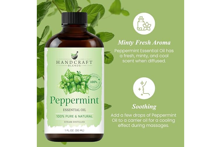 Handcraft Blends Peppermint Essential Oil – 1 Fl Oz – 100% Pure and Natural – Premium Grade Essential Oil for Diffuser and Aromatherapy, Skin, Massage, Candle and Soap Making Fragrance