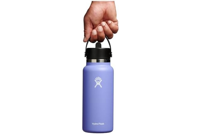 THE BEST BOTTLE: A 32 oz Wide Mouth insulated water bottle with Hydro Flask's leakproof Flex Straw Cap—easy to fill, easy to drink. Open it up, add your ice, and flip to sip. The insulated stainless steel keeps it cold for up to 24 hours.