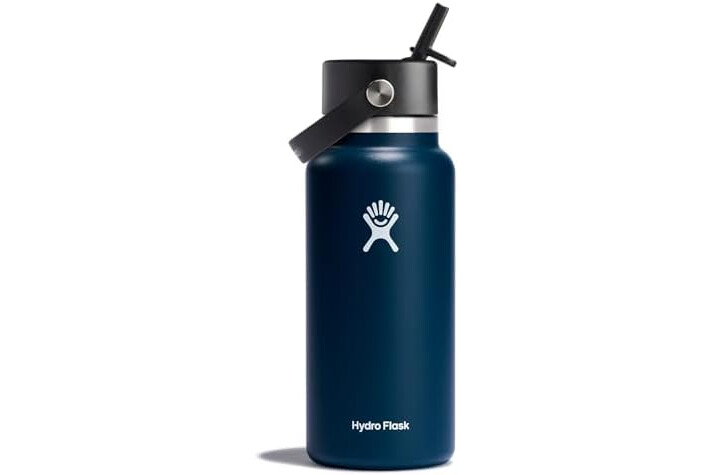 32 OZ INDIGO BLUE BOTTLE: Flip it and sip it with the Hydro Flask Wide Mouth insulated water bottle with closeable straw cap. With a comfortable, flexible handle, the leakproof straw cap is easy to open and close. Double-wall insulation keeps drinks cold up to 24 hours.