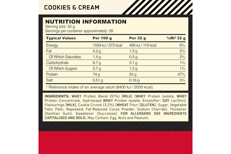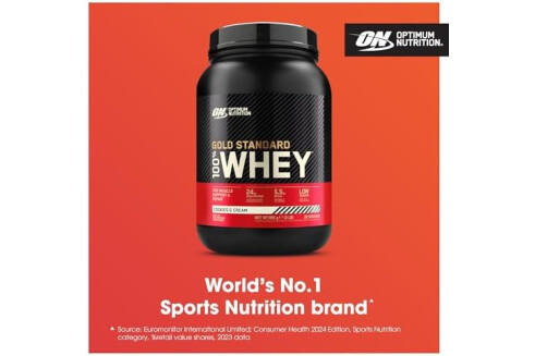 Optimum Nutrition Gold Standard 100% Whey Protein Powder, Cookies & Cream, 2 Pound (Packaging May Vary)