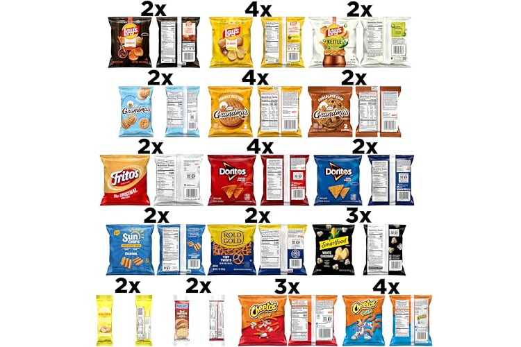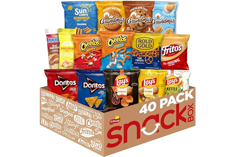 • 40 count of Your favorite Frito Lay snacks Perfect for any snacking occasion and great as a care Package for a loved one