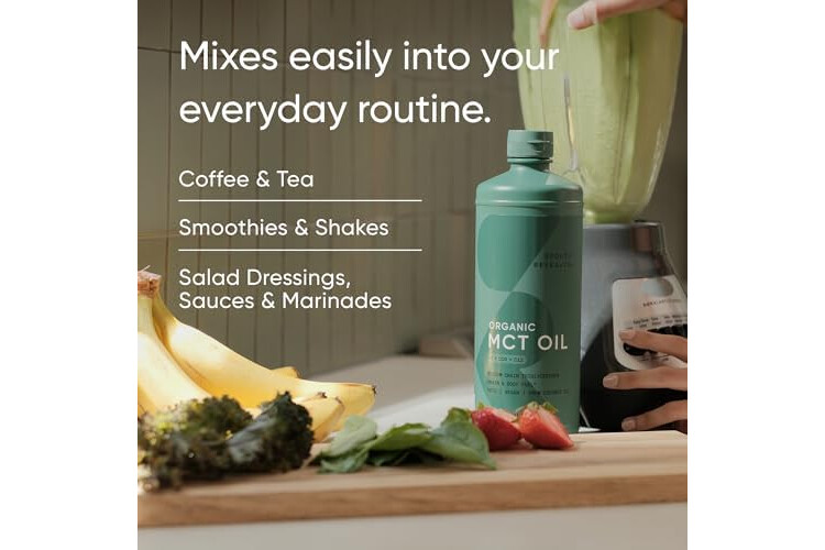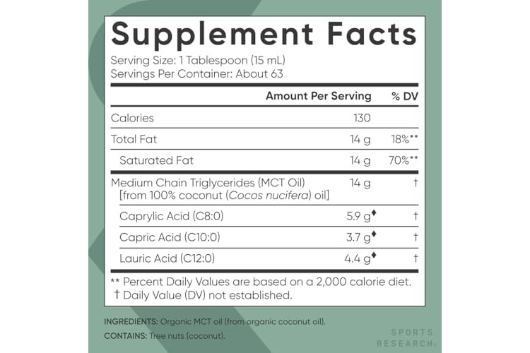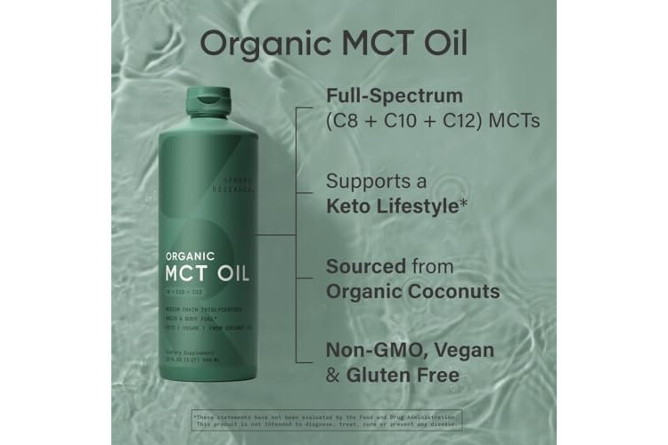 Sports Research Organic MCT Oil - Keto & Vegan MCTs C8, C10, C12 from Coconuts - Fatty Acid Brain & Body Fuel, Non-GMO & Gluten Free - Flavorless Oil, Perfect in Coffee, Tea & Protein Shakes - 32 oz